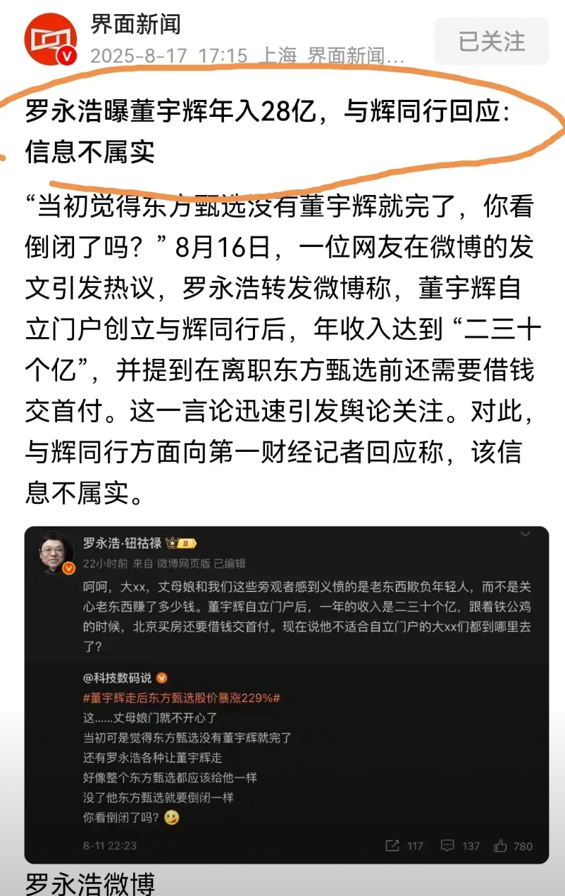 罗永浩该伤心了,董宇辉并不领他的人情。