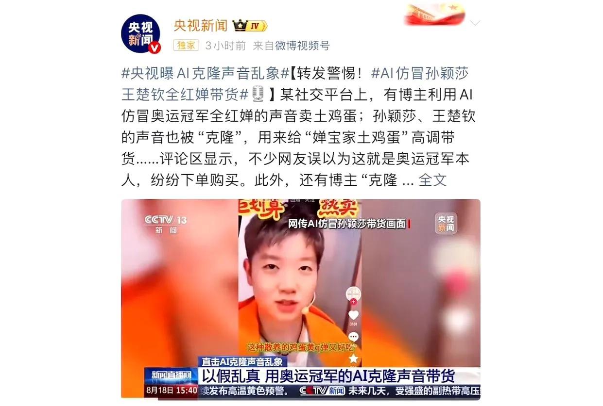 这都什么鬼哟! 王楚钦和孙颖莎帮全红婵直播卖鸡蛋啊! 这么离谱的事情不会真的有人相信吧! 这AI创造出来真的是不知道是时代的进步,还是骗子的进步了 我看了视频,那个声音就跟王楚钦、孙颖莎、全红婵的声音一模一样
