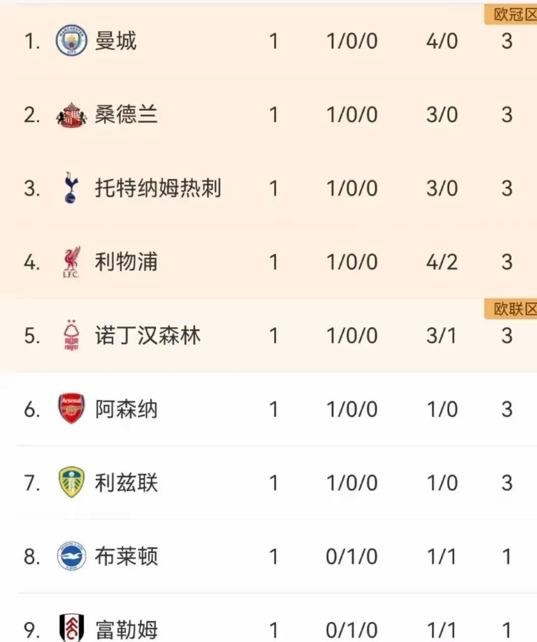 英超首轮结束,曼城、利物浦、阿森纳都顺利拿到三分,曼城依靠新援赖因德斯的强势表现