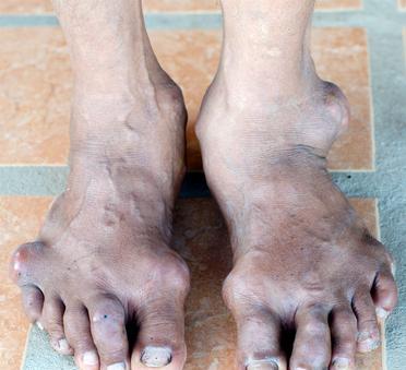 这双浸泡在溶液中的身体结构并非双脚而是一双手。这双手已经在溶液中浸泡了一百年。可见,这双手在浸泡前已经变得畸形。可是,当年的医生并不知道这是什么病。于是,这名病人去世后,医生将他的双手割下后保存了起来。后来的医生才知道这双手是痛风患者的手。如今,这双手在溶液中一直保存了下来。 痛风又被称为“富贵病”。这是因为该疾病与患者经常食用美味佳肴,导致营养过剩有一定的关系。痛风是一种古老的疾病。此疾病不仅被称为“富贵病”,还被称为“酒肉病”与“帝王将相病”。因此,人人都应该注意饮食。因为,不良的饮食与疾病密切相关。
