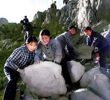 这是六十年代山西大寨“铁姑娘队”们。每位姑娘扎着辫子,面露微笑。当年,劳动人民最光荣的观念深入人心。这些姑娘热爱劳动。她们也坚信凭着自己的双手双脚能改变大寨的面貌。她们精神饱满,干劲十足。这些姑娘平均年龄只有二十岁左右。山西大寨是全国农村的榜样。这些铁姑娘也是全国姑娘的榜样。 铁姑娘队的队长名叫郭凤莲。在她的带领下,这些姑娘没日没夜的劳动。她们凭借钢铁一般的意志修建梯田、开凿水渠。功夫不负有心人,女人能顶半边天。一项项艰难的任务被她们一一完成。最终,这片土地由曾经贫瘠不堪的荒地变成了种田打粮的肥沃之地。你可能不知道这群曾经战天斗地的姑娘,但你不可能忘记人人曾向往的山西大寨。