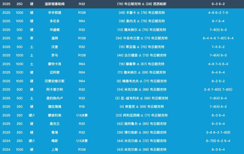 #布云朝克特2比0西西帕斯# #布云朝克特淘汰头号种子# 布云朝克特结束了对TOP50的18连败,上一场对阵前50的胜利是去年中网1/4决赛战胜卢布列夫。
