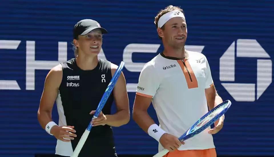 美网混双首日两轮战罢,决出了四强,最受关注的阿尔卡拉斯与拉杜卡努组合虽然首轮就以两个2-4输给了德雷珀/佩古拉,但球迷对两人的八卦热度丝毫没有减退,两人在赛场上频频互动,不断引发全场尖叫。首轮比赛中,德约科维奇/丹尼洛维奇、兹维列夫/汤森德、梅德韦杰夫/安德烈耶娃、凯斯/穆塞蒂等几对名将组合也都无缘四强,最终两连胜晋级四强的是鲁德/斯瓦泰克、佩古拉/德雷珀、埃拉尼/瓦瓦索里和柯林斯/哈里森