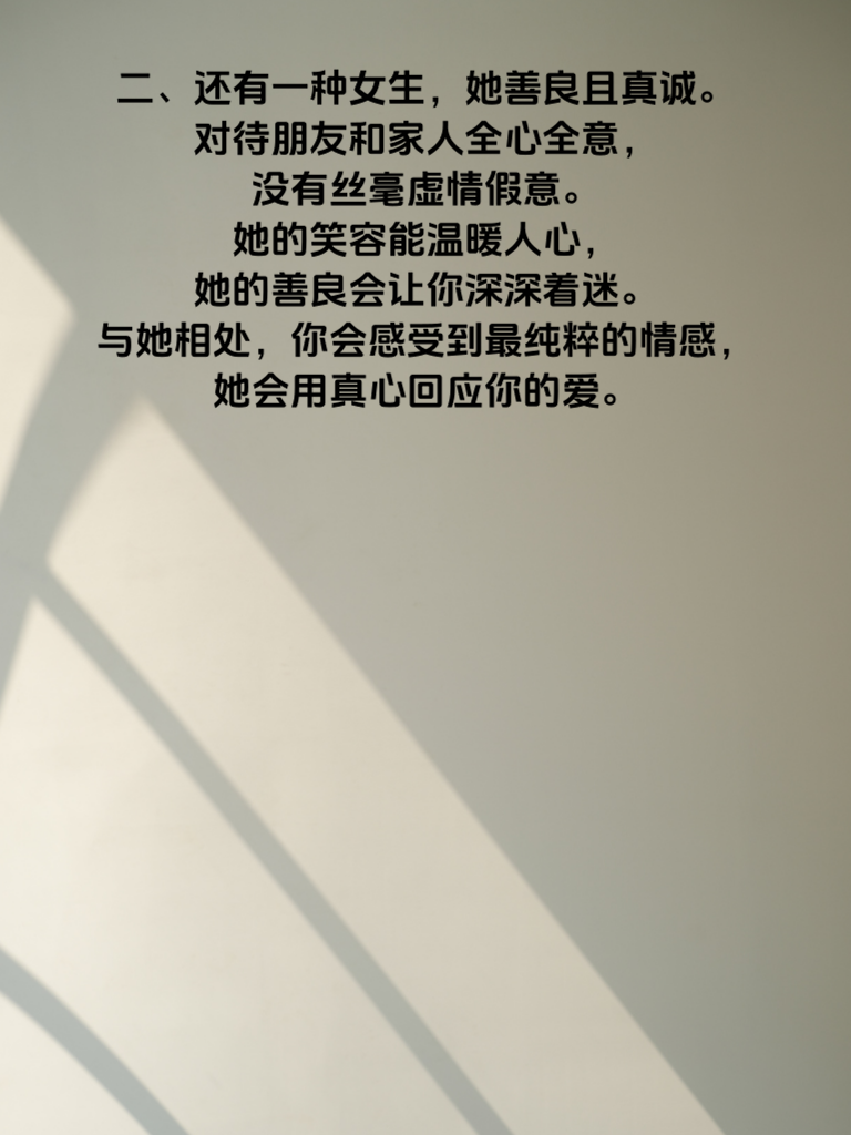 一、在爱情的世界里,有这样 3 大极品女生,她们宛如璀璨星辰,值得你用心去追求。首先,有一种女生,她独立且自信。她清楚自己的目标,不依赖他人,在职场或生活中都能绽放光彩。追求她时,你会发现她既有小女人的温柔,又有大女人的坚韧。 二、还有一种女生,她善良且真诚。对待朋友和家人全心全意,没有丝毫虚情假意。她的笑容能温暖人心,她的善良会让你深深着迷。与她相处,你会感受到最纯粹的情感,她会用真心回应你的爱。 三、最后一种极品女生,她热爱生活且充满情趣。她能在平凡的日子里发现美好,会精心布置自己的小窝,也会用心准备一顿美食。和她在一起,生活永远不会单调,她会带你领略生活的多彩。如果你遇到了这样的女生,千万别犹豫,勇敢去追,用你的真心和行动,或许就能收获一段美好的爱情。