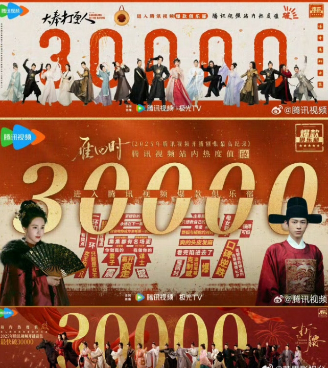 优酷有《难哄》,《藏海传》,《以法之名》,《凡人修仙传》,《蛮好的人生》,《异人之下2》六部,爱奇艺有《漂白》,《临江仙》,《朝雪录》,《万物生》四部,腾讯有《雁回时》和《折腰》两部,而且云合集均全都过了3000万,而且这两部的营销不是很大,如此来看,腾讯今年的破万含金量高很多。