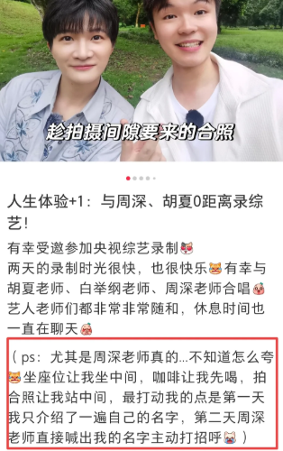 第一天介绍了一遍名字,第二天周深就直接喊出了他的名字,还主动跟他打招呼!