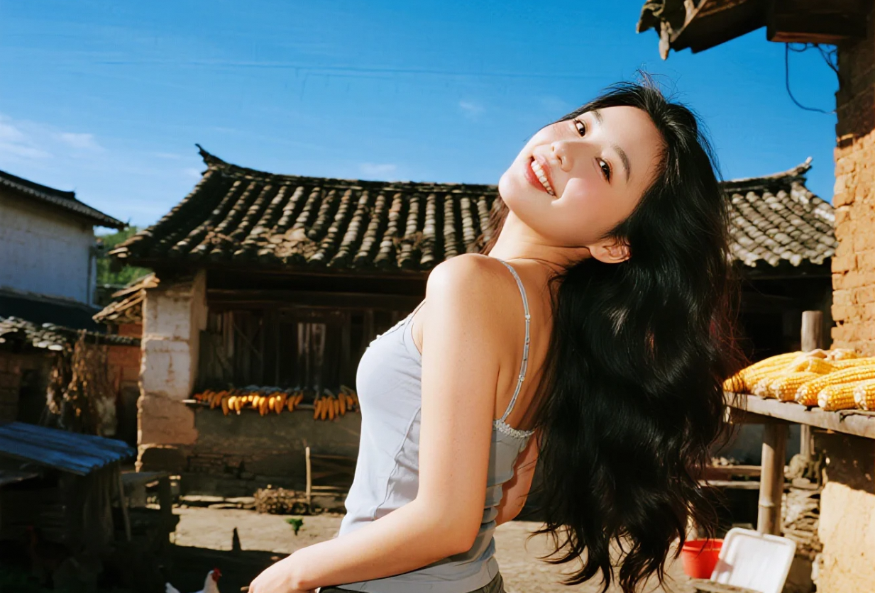小姐姐的乡村漫步:在外婆家院子里的悠闲时光