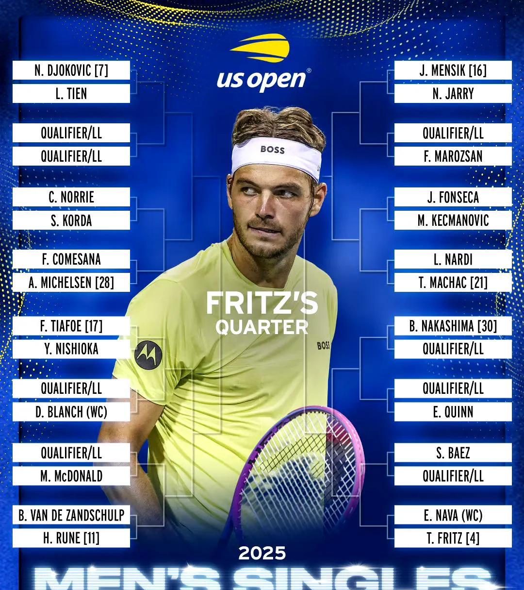 德约科维奇和阿尔卡拉斯在一个半区,法网和温网之后半区避开了辛纳。