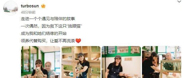 #孙俪领养独眼猫# 孙俪晒出自己领养的独眼猫,画面里满是温柔。人美心更善,这才是真正的“娘娘”风范呀! #孙俪爱心#