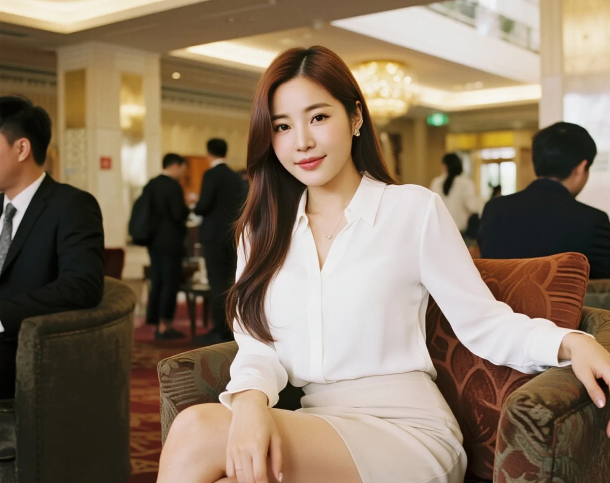她在酒店派对中央一笑,整场灯光都为她聚焦