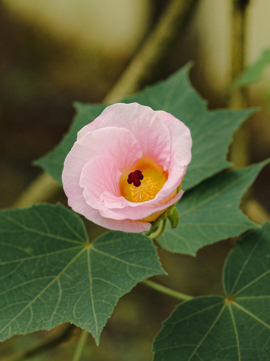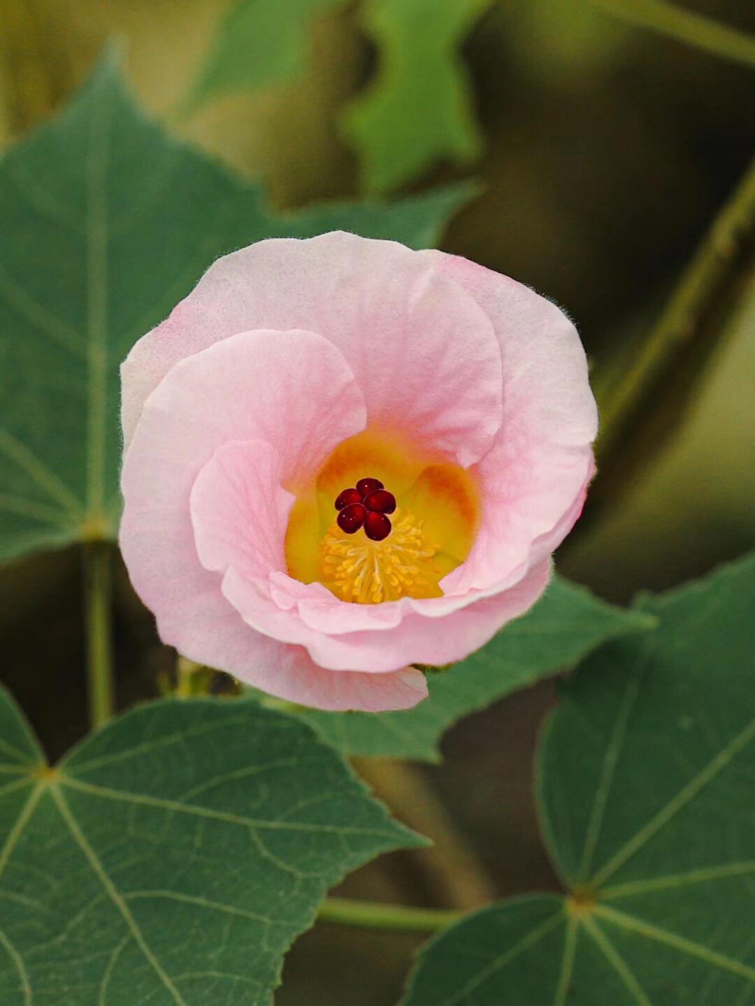 木芙蓉花一日三变,清晨初开时是白色或淡粉色(图6),午后慢慢转为粉红色,傍晚时分颜色呈深红色。这是因为光线强度不同而引起花瓣内花青素的浓度产生了变化。所以木芙蓉也称“三醉芙蓉”。