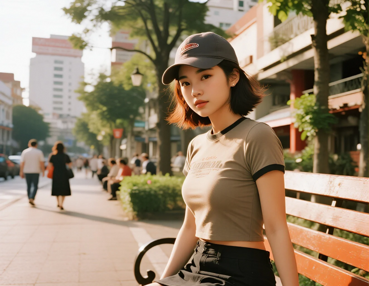 美眉坐在公园长椅上,阳光洒在她身上犹如美神再世