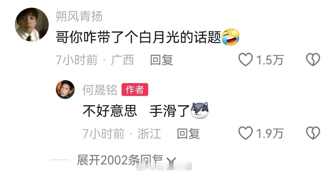 何晟铭的抖太敢发了还带了白月光赠白月光,然后哐哐回复谁看了何晟铭的抖评论区会不笑