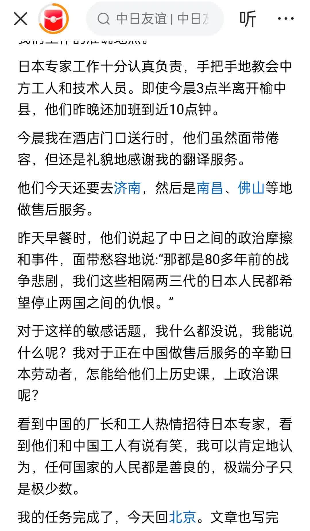 中日两国应该放下恩怨,共谋合作 国家之间的恩怨,个人也解决不了,个人关系好也罢,坏也罢,都无法影响国家进程。 我还支持国人买日货,去日本玩、泡日妞,找日本老婆,这是个人交往,别人能说什么? 就是别在中国穿和服。 但国家一旦交恶,及时回国就好。那些加入日本籍的,只能尊重他个人的选择,自己承担。 中日国家恩怨的了结法,是件非常严肃的事。日本官方,必须彻底反省,表现出足够诚意。 比如归还抢劫的文物、黄金; 侵华史编入教科书; 中国驻军日本; 日本去军事化; 拆毁“八纮一宇”塔; 将侵华战犯迁出“靖国神社”; 琉球自决; 等一系列国家行为,中日才可能放下恩怨,走向合作。