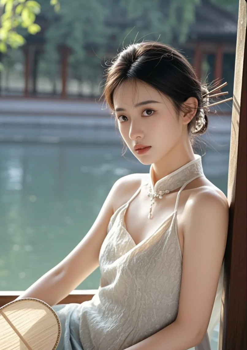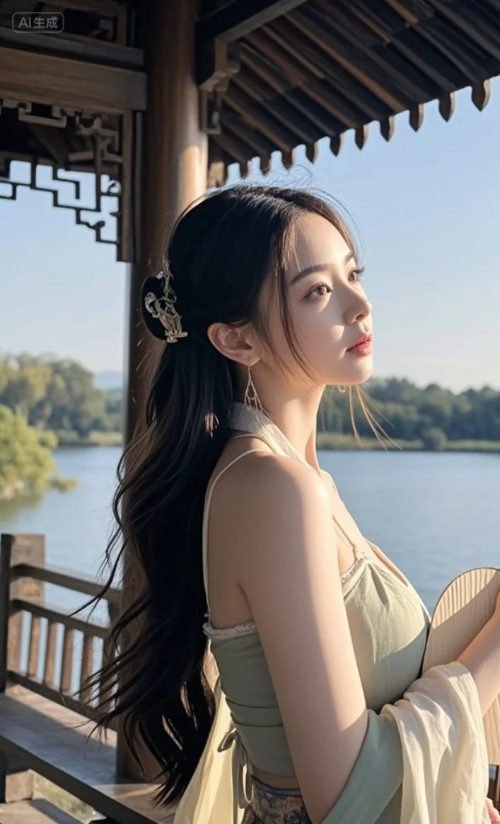 湖边撑伞的古风女孩,你觉得仙不仙?