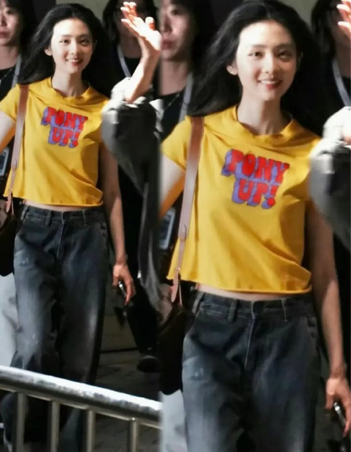 黄多多不愧“最美星二代”,黄色T恤衬托的像大明星!和孙莉真像!,这颜值气质在内娱也是顶流的存在吧!