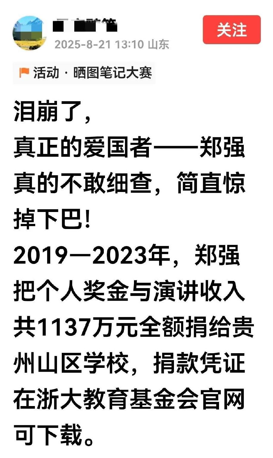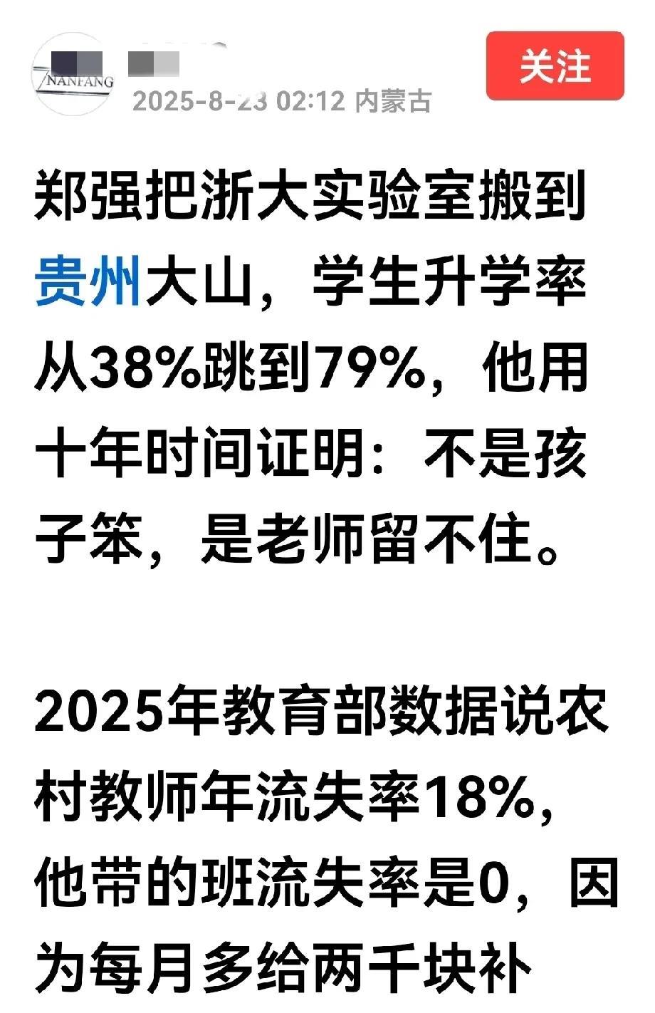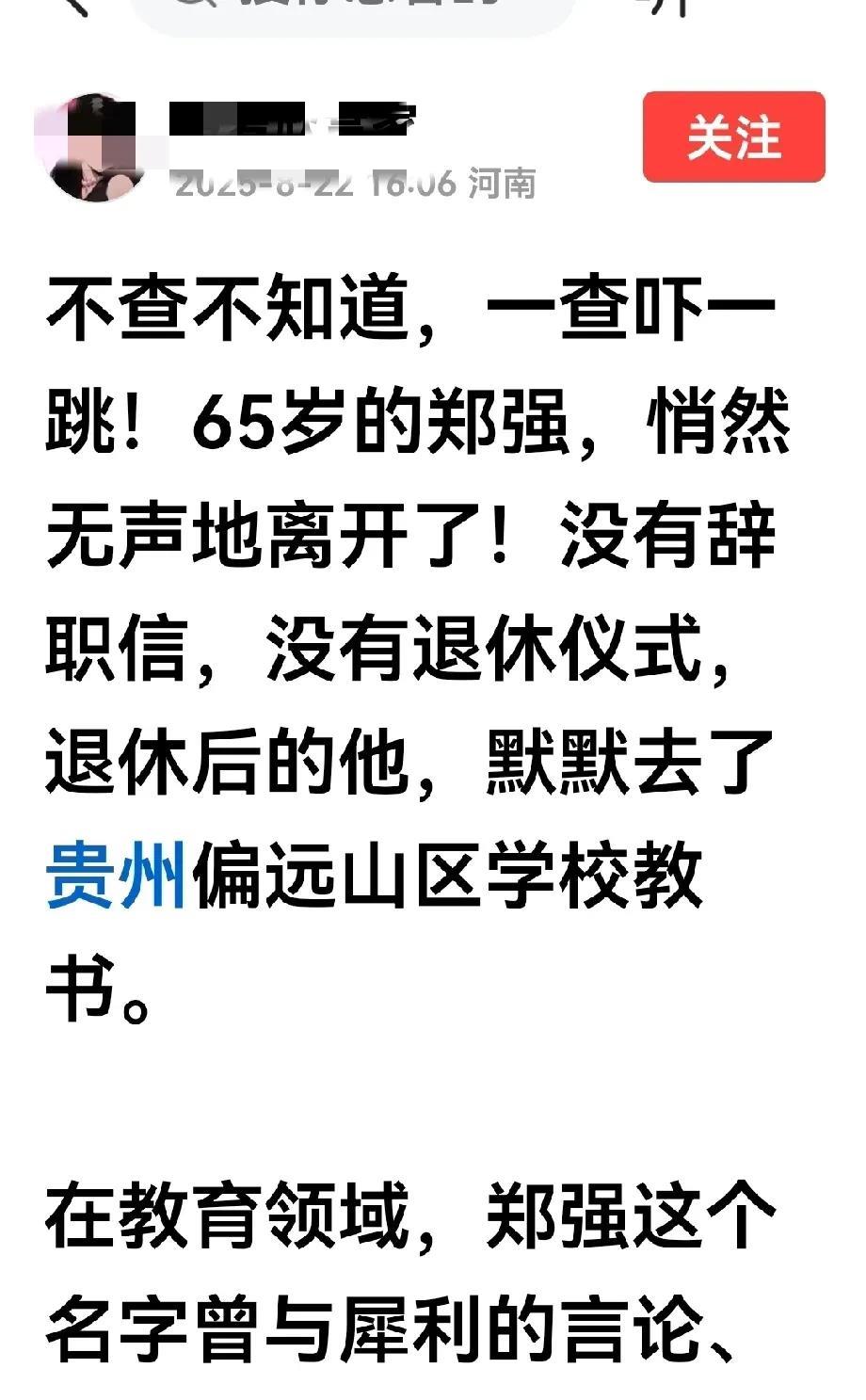 北风吹,西风烈 昨日网络上一大波有关郑强的统发稿霸屏了。 什么郑强去山区当老师啦,什么郑强把浙大试验室搬到山区中学去啦,什么他把一千多万的个人奖金和演讲费都捐了……结论是郑强是第二个张桂梅,甚至被拔高到鲁迅第二人。可信乎? 为了增强郑强的“可信”度,统一用些虚头巴脑的说法:不查不知道,一查就“戳心”,甚至什么“泪溃”了。却不料信与不信不是虚言为基础。 至于封郑强为思想家、教育家、演说家的说法多如牛毛,推荐他当教育部长、清华北大校长的也不少。一个免职退休多时的人,想当教育部部长只是一忱黄梁。 如此密集的统发稿,不过是炒,且己反复炒早已炒焦了,炒者只是在消费郑强,以赚取可怜巴巴的流量罢了。 如此狂炒必有妖,呜呼哀哉!呜呼哀哉矣!