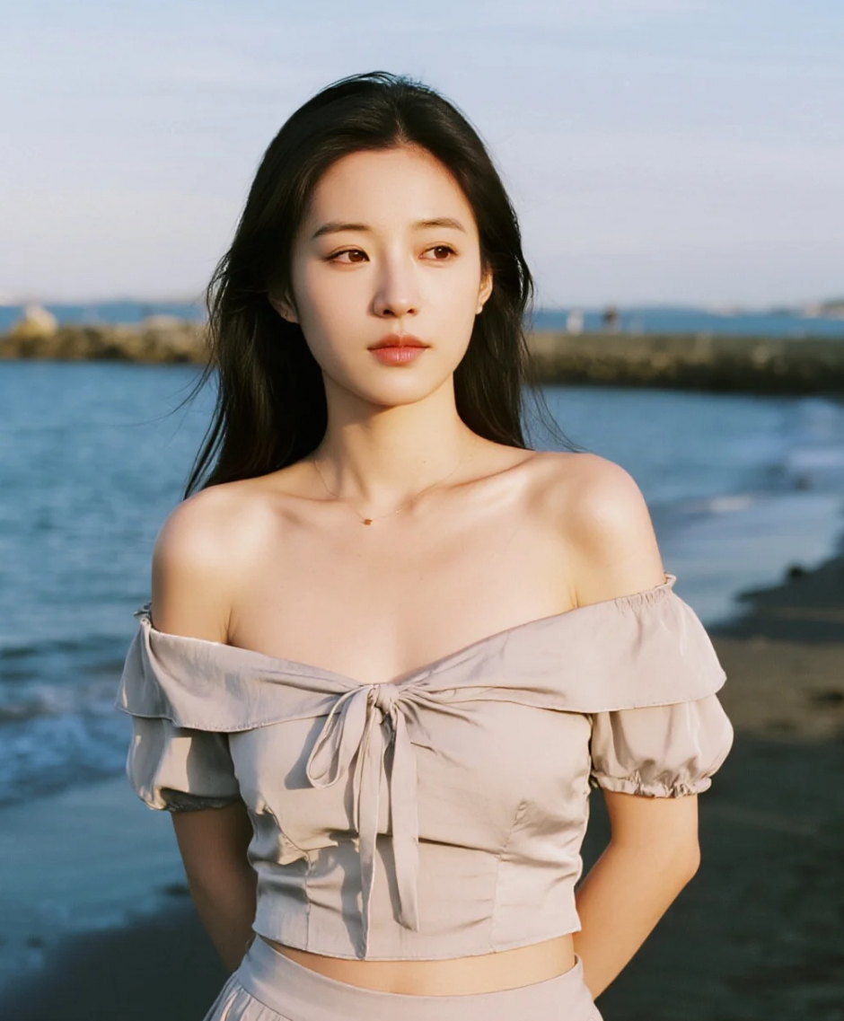 看她在浅水区嬉戏,快乐都写在脸上了!
