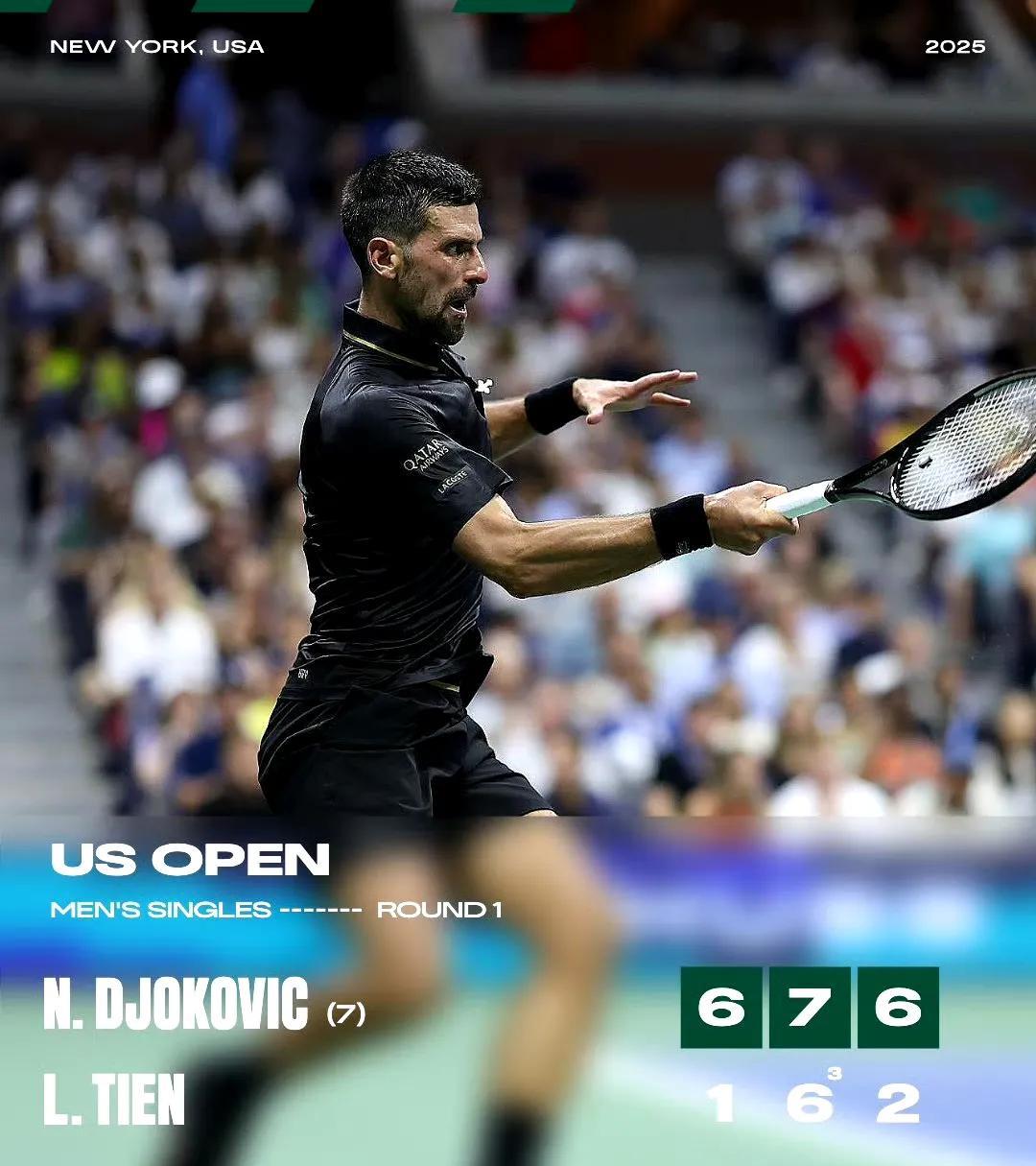 浪费发胜赛点,久疏战场的38岁老将德约克服闷热高温体能极点和脚趾水泡,6-1/7-6/6-2击败19岁本土新星勒纳·钱晋级第二轮。 很久没打正式比赛的德鸡只能慢慢来进入状态。这是德约的第91场美网胜利,19次参加美网全部闯过首轮关。 两人的年纪相差了18岁零194天,是你鸡职业生涯打过年龄差距最大的比赛。