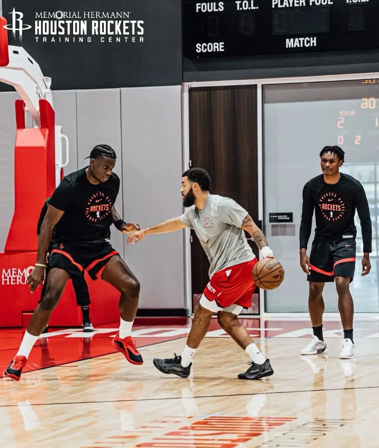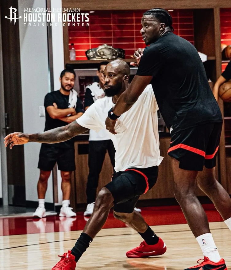 romo:卡黄回归火箭,来到火箭训练中心,和阿门、饭乔丹、姐夫一起训练。家的感觉