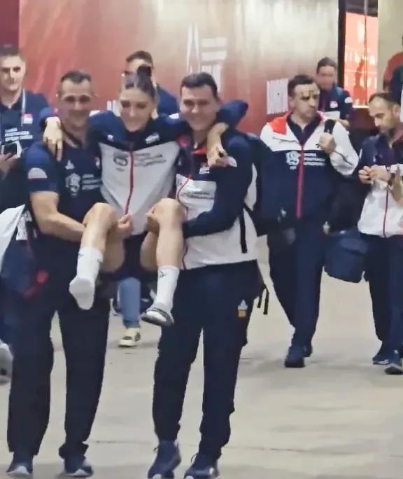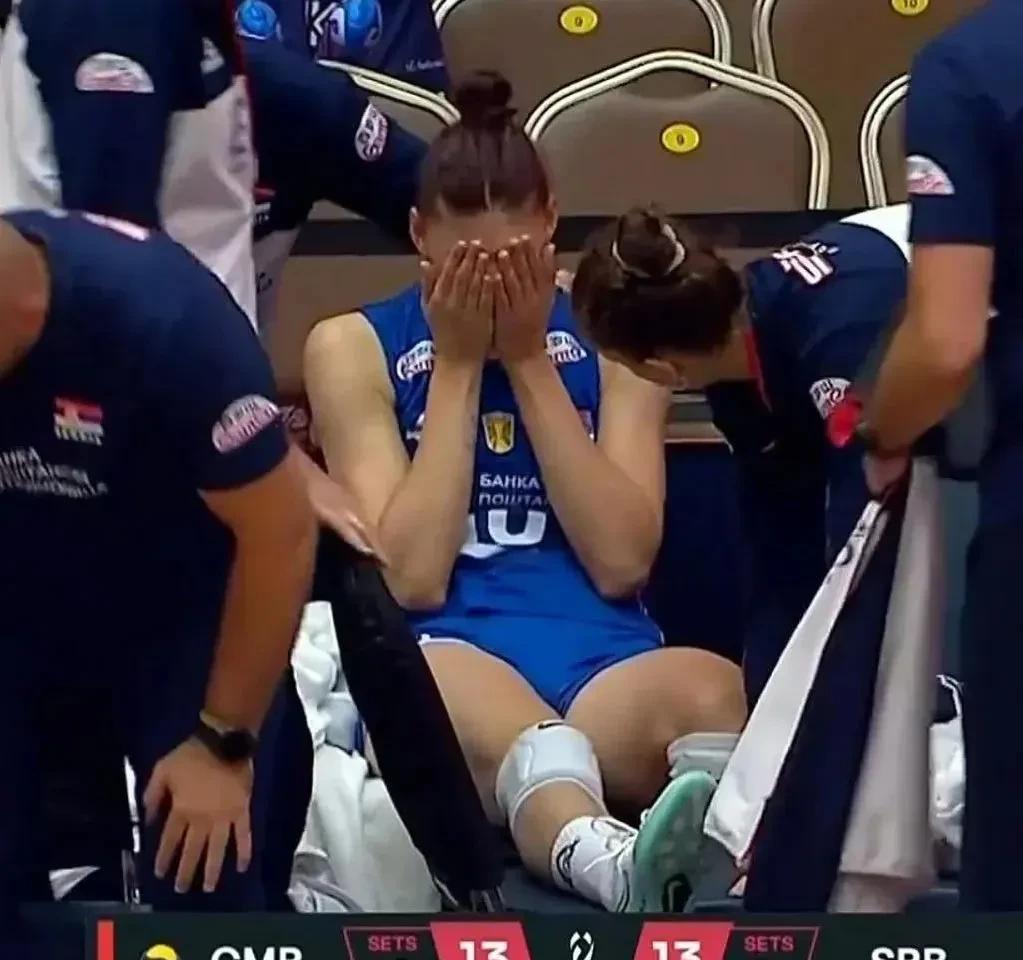 女排世锦赛H组第二轮比赛,卫冕冠军塞尔维亚女排以25-16、25-17、25-12横扫非洲劲旅喀麦隆,取得两连胜,比赛中,球队核心博斯科维奇在拦网落地时不慎踩到队友导致右脚踝扭伤,痛苦倒地后被工作人员搀扶离场,视频看到几乎扭了90度,令人揪心。