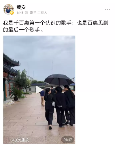 黄安动情地表示:“我是千百惠见到的第一个歌手,也是她生前最后见到的一个歌手。”