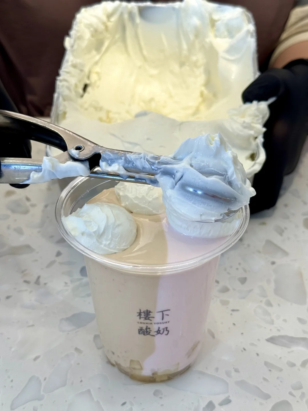 杯壁上有朵朵小云,手打酸奶雪球像浮云~