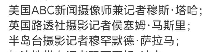 8月25日以色列空袭加沙一所医院,造成包括美联社、路透社、半岛电视台、加沙当地等4名记者在内共19人遇难,其中还有医护人员。 相关数据显示,巴以战争22个月已造成新闻媒体人遇难192人。 最近的一次还有8月10日,以军空袭加沙城希法医院附近的一个帐篷,导致半岛电视台5名记者遇难。