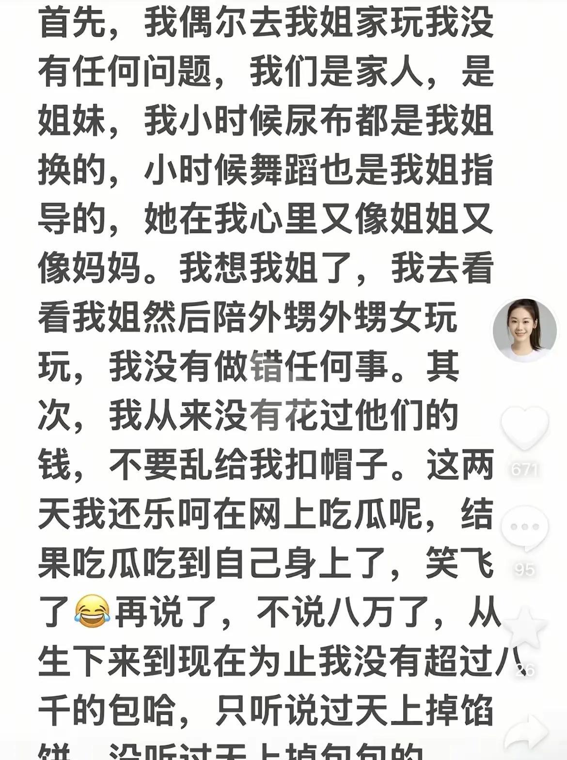 郑凯过分了,害死小姨子了! 郑凯虽然是姐夫,但是真的做得很差,完全不给岳父母一家留面子,说他岳父母全是靠着他吃饭! 他们没养老金吗?他们的养老金存起来了吗?他们老人家又能吃多少呢?你的孩子虽然有保姆,但是有岳父母在一旁,是不是好一些?是不是也可以搭把手? 最麻烦的是小姨子苗艺博,说小姨子吃他的,住他的,还说拿他的卡买了8万块钱的包!而实际上呢?苗艺博说她并没有住他们家,只是偶尔过来看看姐,看看外侄!这有什么问题吗? 更难堪的是,她从来就没有花过郑凯的钱。她说,别说8万的包,她工作后,连8000的包都没买过! 郑凯这样诋毁小姨子一家,不但小姨子以后肯定会尽量少来他们家,而且这样诋毁她,她以后嫁人都会困难!