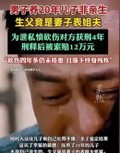 河北保定,男子和同村邻居聊天,邻居无意间说了一句话:“你没发现你儿子和你一点都不像吗?”男子将邻居的话放在心上,转身和儿子做了鉴定,结果发现养了20年的儿子果然不是亲生的,孩子的生父竟然是妻子的表姐夫的,男子气不过,就砍伤了妻子的表姐夫,结果妻子的表姐夫不提半分的抚养费,反而让男子赔偿12万。 8月26日齐鲁晚报报道,老李吃饱饭,闲来无事,又跑到村头,和同村的一群村民聊天,村民们有的在打牌,有的在吹牛,大家过得很惬意。 老李没事也在吹自己的儿子,他不是在说儿子厉害,就是在说儿子长得帅,结果一个邻居就跟他说了,“你没发现你儿子长得跟你不像吗?” 说者无心,听者有意,老李听出了这言外之意,儿子确实长得不像他,他不敢反驳,默默地回了家。 回家之后他越想越觉得不对劲,按理说,这孩子长得不像父亲,也应该长得像母亲,可是他儿子既不像父亲也不像母亲。 其实老李早有察觉,但就是一直没有去细想这件事,经邻居这么一说,老李更觉得儿子不是自己的。 于是他偷偷地和儿子做了亲子鉴定,当他看到鉴定结果的那一刻,他愣在了原地,儿子果然不是他亲生的。 这可是他养了20年的儿子啊,他几乎把全部的父爱,全部的心血和精力都放在儿子身上。 如今20年过去了,他才得知儿子不是自己亲生的,他真的很心痛。他心痛的不是知道了孩子不是自己亲生的,他心痛的是,儿子不是他亲生的,他却养了20年。 这20年,他不知花了多少时间陪伴儿子长大,他不知花了多少钱供儿子读书,他更不知自己花了多少精力培养儿子。 在老李心中,儿子就是他的骄傲,可现在的事实告诉他,他的儿子不是他亲生的,他真的难以接受这个事实。 既然他发现了这个事实,他自然要搞清楚,儿子的生父到底是谁的。 他查了下去,这不查不知道,一查吓了他一大跳,他儿子的生父竟然是妻子的表姐夫的。 老李的妻子的表姐夫是张某,老李知道儿子的生父是张某时,他真的气不过,他气呼呼地来到张某工作的工厂,等待张某下班,张某一出来,他上去就将张某砍伤了。 事情到了这里还没有结束,4年后,当老李出来了,他却被张某告了,张某竟然要他赔偿12万。 李某也是被这件事整得莫名其妙,他辛辛苦苦替张某养了20年的孩子,张某没有提半分抚养费的事情,竟然还要他赔偿12万,他接受不了。 那张某为何要让老李赔钱呢? 原来张某被老李砍伤过后,历经了4年都没有治愈,落下了终身残疾,而且生活不能自理,所以他这才起诉老李,要求赔偿12万。 张某的诉求很简单,老李的行为导致他人身受到损害,所以老李就应当赔偿。 《民法典》第1179条规定:侵害他人造成人身损害的,应当赔偿医疗费、护理费、交通费、营养费、住院伙食补助费等为治疗和康复支出的合理费用,以及因误工减少的收入。造成残疾的,还应当赔偿辅助器具费和残疾赔偿金。 张某明知道自己妻子和老李的妻子是表姐妹,两人还要在一起,并且生子,这行为有违公序良俗。 《民法典》第8条规定:民事主体从事民事活动,不得违反法律,不得违背公序良俗。 因此在这件事当中,张某有很大过错,老李认为自己不应当赔那么多钱。 法院经过审理认为,虽然张某有过错,但他的伤势确实过重,老李应当赔偿,二审维持了一审判决。 除此之外,本案存在一个争议,老李要给张某赔钱,那么张某该给的抚养费怎么算呢? 《民法典》第1067条规定:父母不履行抚养义务的,未成年子女或者不能独立生活的成年子女,有要求父母给付抚养费的权利。 老李在不知情的情况下,抚养了张某的孩子20年,老李承担了张某该履行的义务,那么老李理应向张某索回抚养费,老李可起诉张某和自己的妻子。