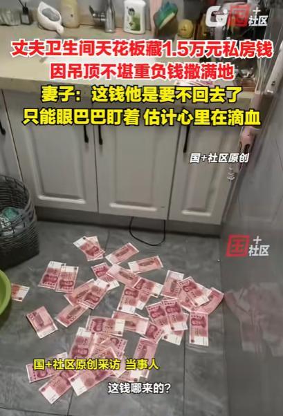 “老公回到家天塌了!”8月25日,山东临沂,一男子下班回到家后,却发现卫生间满地的百元大钞,男子一眼就看到自己藏私房钱的天花板,原来这些钱都是他自己偷偷藏的,可却因为吊顶不堪重负,从天花板掉了出来,网友:这下可解释不清了! 近日翟女士(化名)正在客厅,里面忙碌着做着家务,突然听见洗手间里面咚的一声,顿时吓得她一惊。 想着洗手间里面什么东西炸了,于是赶紧上前去查看发生了什么,到了之后竟看见满地的百元大钞。 翟女士当场就愣住了,觉得这也太不可思议了吧,凭空出现这么多钱,和天上掉馅饼没什么区别。 等她缓过来神之后,她看见自己家的天花板裂开来了,顿时恍然大悟,她立马清楚了这些钱的来源了。 是老公的私房钱,然而她面对这么私房钱她竟竟一点也没有生气,而是冷静地把钱收走,然后等晚上丈夫回来的时候,明确告诉丈夫,这钱以后归她管,不许再有下次。 这时的丈夫满脸惊讶且有一丝丝害怕,于是立马发誓说以后绝对不会出现这种情况了。 随后翟女士还补充的说到,让自己的丈夫长长心眼,以后藏钱不要藏同一个地方,不然被发现了直接就全没了,而且要考虑重量,一股劲的往一个地方放时间久了肯定不撑不住的。 翟女士觉得自己老公藏钱被自己暴露这件事情很搞笑,于是就发到了网上,不料引起了众多媳妇的共鸣。 有的人评论说自己的丈夫藏钱最后都不知道藏哪了,自己给他拿走花了也不知道,现实中这样的案例还有很多。 还有不少人笑称说这次不是天塌了而是“钱塌了”。 表面上只是1.5万元掉下来,实际上是夫妻沟通的缺口被揭开。 其实这次的意外提醒的不是钱该怎么藏,而是夫妻之间该怎么沟通,家庭想要生活的和睦不是靠剥夺花钱的权利来压制一方。 只有双方相互信任,夫妻二人之间的关系才会更加幸福美好。