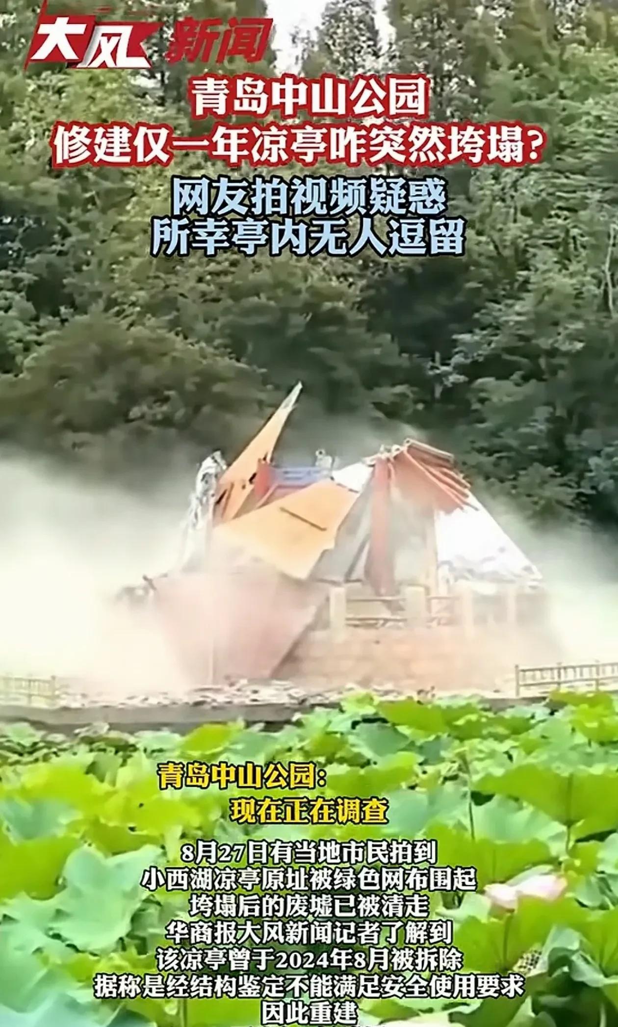 不会吧?[捂脸]难道著名的青岛中山公园也有豆腐渣工程?希望尽快查清楚!幸亏里面没有人啊[祈祷][祈祷][祈祷][祈祷]