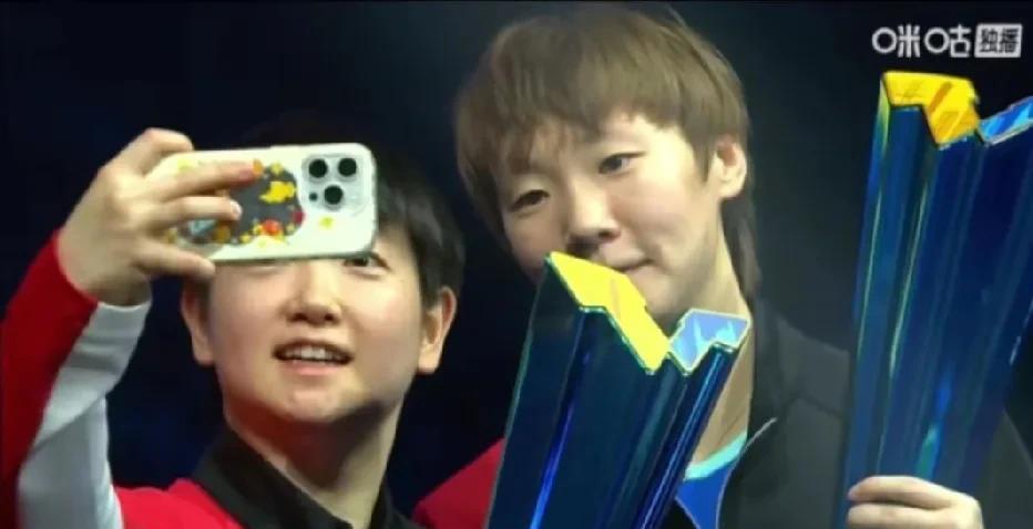 曼昱跟着莎莎打比赛很幸福的感觉。合照就能看得出来。这让我想起了巴黎奥运会女团结束,莎莎把曼昱拥入怀里的场面。赛后的采访,曼昱对着话筒说莎莎笑的都少了。那一刻真的是很动容。 其实这一年来,她们两个笑的都很少。自打美国大满贯赛她们两个再次配双打,肉眼可见的这俩姐妹开心多了。一起被淘汰,一起输球。就像约好了一样。对抗桥本帆乃香都赢了。对抗小将的冲击又一起抗住。赢下日本女双后看台的队友激动的给予满满的情绪价值。团魂在那一刻突然就升华了。瞬间觉得这才是我们真正不可战胜的国乒队。