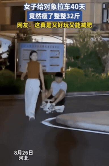 “解释不清了!”河北,女子为了快速减肥,灵机一动,竟然买了辆儿童车,每天晚上让对象坐上面,自己则在腰上绑根绳子,天天给对象拉车跑步,40天竟然瘦了整整32斤!对象也开心了,女子也开心了,网友:给我老婆发了,大家等我消息! 一位年轻女子在前方奔跑,腰间系着一根绳子,绳子另一端连接着一辆儿童车,本以为儿童车上坐的应该是小孩子,但是车上坐着的竟然是她的对象! 女子步伐轻快却坚定,每一步都带着力量,显然是在进行一项颇为特别的运动。谁能想到,就是这样一个独特的场景,背后藏着女子减肥的奇思妙想,更在短短40天内,让她成功瘦下32斤! 这位女子平日里和许多人一样,为体重问题烦恼不已。试过各种常见的减肥方法,节食让她饿得头晕眼花,却效果甚微。普通的运动,像跑步、跳绳,又难以坚持,每次运动都像是在受刑,体重秤上的数字始终纹丝不动。看着镜子里自己圆润的身材,她满心焦虑,却又无可奈何。 一个平常的夜晚,女子在小区里散步,看到孩子们骑着儿童车欢快地穿梭,灵光一闪突然有了个大胆的想法。要是买一辆儿童车,让对象坐上去,自己拉着他跑步,既增加了运动的趣味性,又能加大运动量,说不定能起到不错的减肥效果。 她兴奋地把这个想法告诉对象,没想到对象也觉得十分有趣,欣然答应配合她。于是,女子很快买了一辆儿童车。从那之后,每天晚上,小区里都能看到她拉着对象跑步的身影。 起初,女子跑几步就气喘吁吁,感觉双腿像灌了铅一样沉重。但她没有放弃,想着自己的减肥目标,咬着牙坚持。对象坐在儿童车上,一开始还担心自己太重会给女子造成太大负担,后来看到女子坚定的模样,也放下心来,偶尔还会给她加油鼓劲。 随着时间的推移,女子逐渐适应了这种运动方式。她的步伐越来越轻盈,呼吸也变得均匀起来。每天的拉车跑步,成了她和对象之间独特的互动时光。他们一起感受着夜晚的微风,听着周围的虫鸣声,仿佛整个世界都变得宁静而美好。 40天的时间,在女子坚持拉车跑步中悄然过去。当她再次站上体重秤,数字的变化让她惊喜不已。整整32斤,这个曾经让她梦寐以求的数字,如今真实地呈现在眼前。 她看着镜子里身材明显变得苗条的自己,眼中满是喜悦。对象也为她的改变感到开心,两人之间的感情似乎也因为这段独特的经历变得更加深厚。 这件事很快在小区里传开了,邻居们看到女子减肥前后的巨大变化,纷纷投来羡慕的目光。有人好奇地向她打听这种减肥方法,女子总是热情地分享自己的经验。后来,有人把女子拉车减肥的视频发到了网上,瞬间引发了网友们的广泛关注。 网友们对这件事看法不一。有的网友惊叹于女子的创意和毅力,留言说:“这真是又好玩又能减肥,太有才了!我也要试试这种方法。” 也有一些网友提出质疑,担心这种运动方式是否安全,会不会对身体造成损伤。但无论如何,女子的减肥故事成了网络上的热门话题,吸引了无数人的目光。 对此你怎么看?欢迎大家在评论区留言讨论。