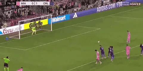 送梅西一份大礼!裁判也急了,77分钟还没扳平比分,于是给了迈阿密国际一个点球! 图一:怎么看都不能判点球吧。 图二:梅西罚点,门将懒得装了,扑都不想扑。