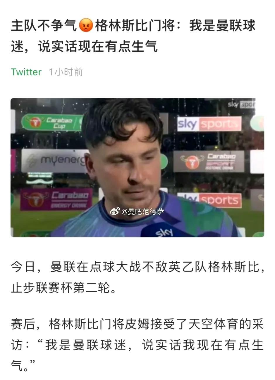 曼联脸都不要了!联赛杯输英乙球队耻辱出局:创148年队史纪录。 曼联全队身价8.87亿欧元,首发3.71亿欧元,格林斯比全队仅360万,首发170万欧。 联赛首轮0-1不敌阿森纳、次轮1-1险平富勒姆,不过这还不是低谷。 联赛杯点球大战不敌格林斯比,上半场就0-2落后,终场结束前马奎尔才绝平。 我的曼怜啊……