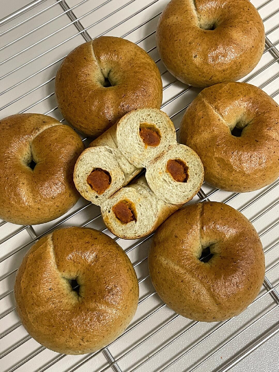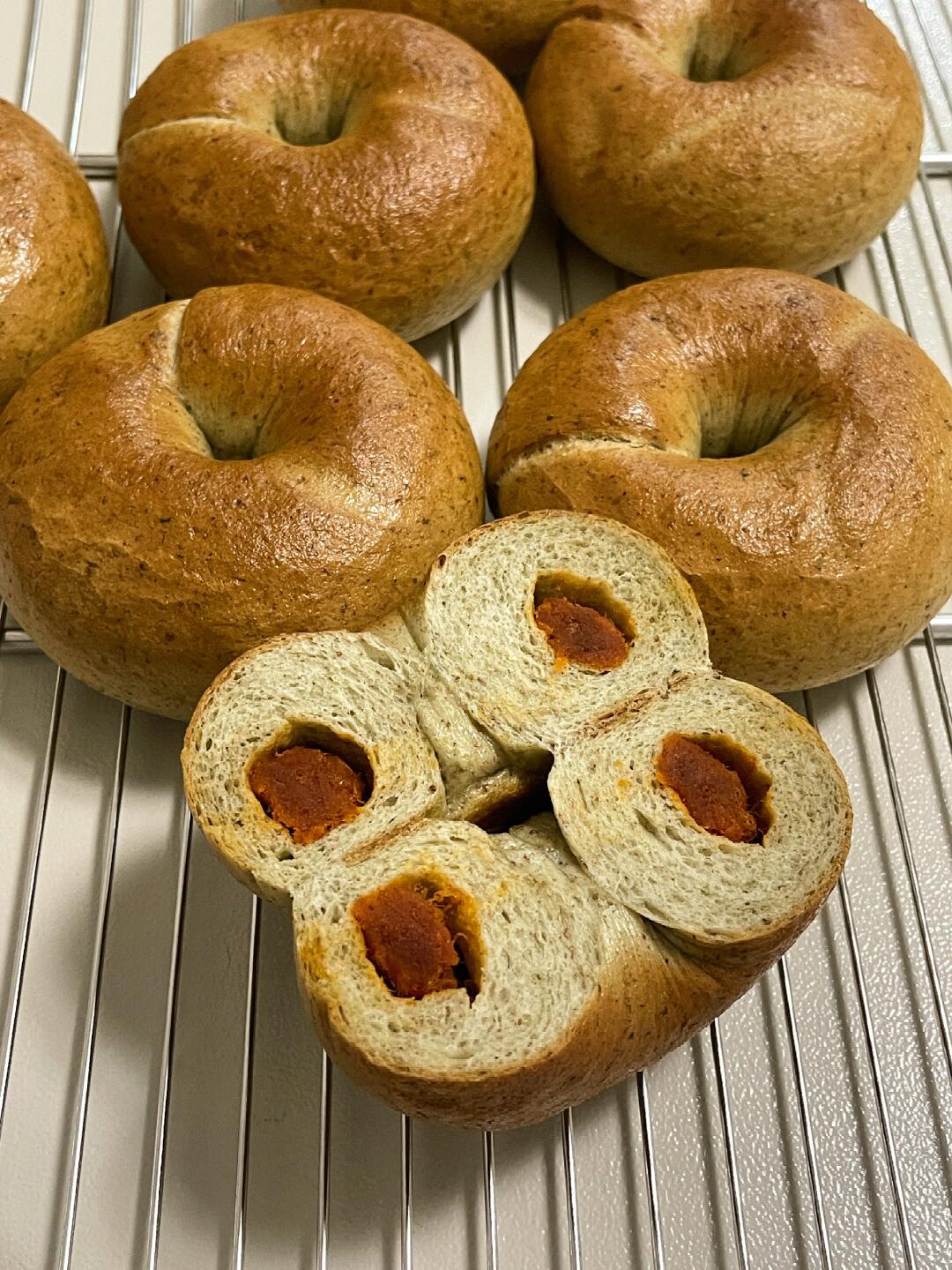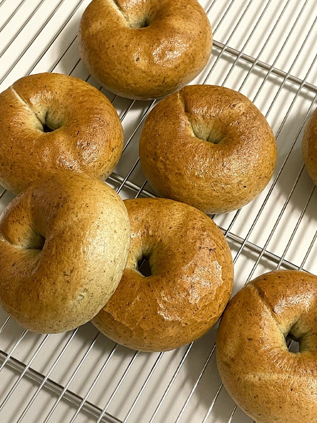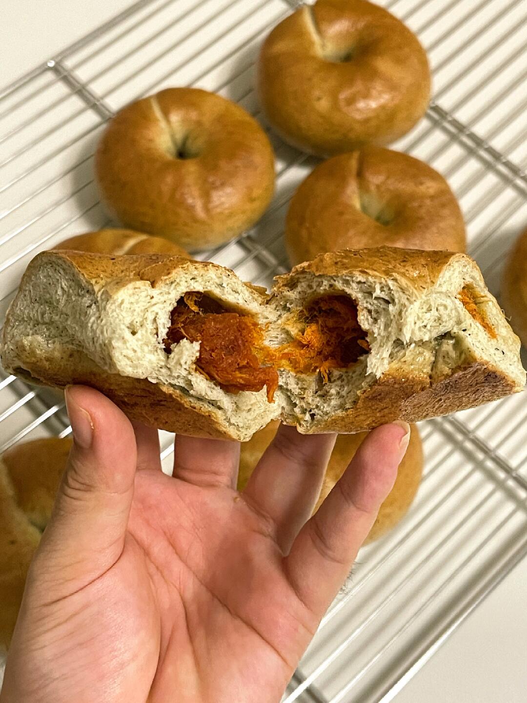 深夜治愈系烘焙🥯黑麦海苔辣松贝果,香喷喷