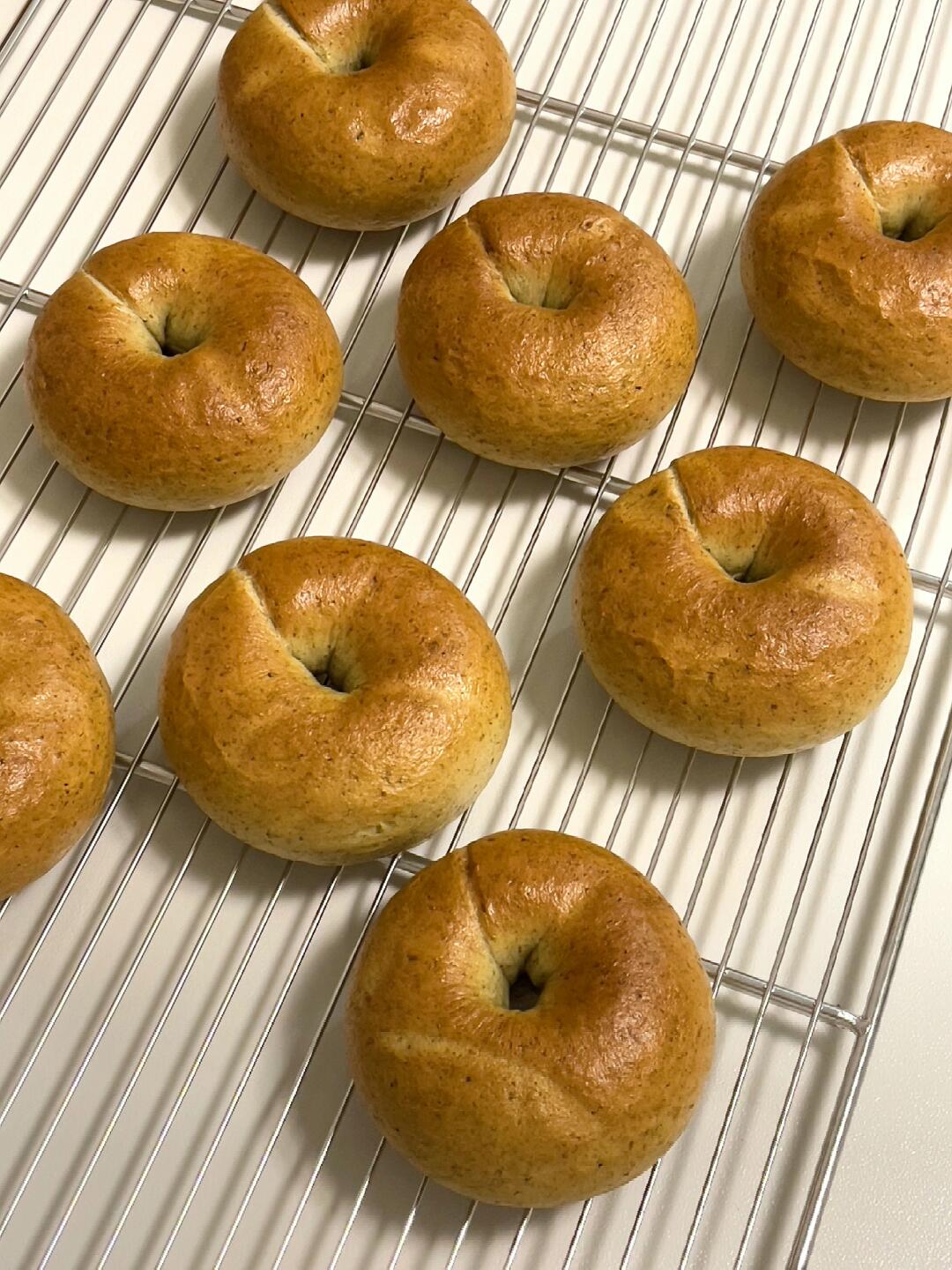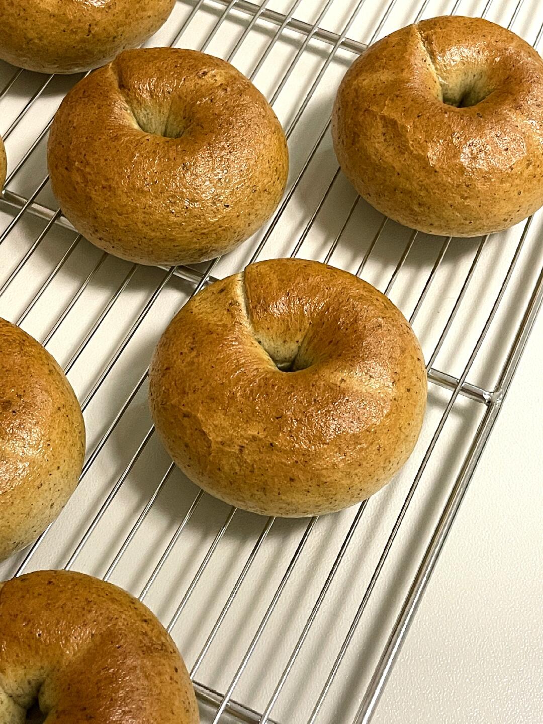 高温快烤,烤出来贝果转移到网架放凉,喷水