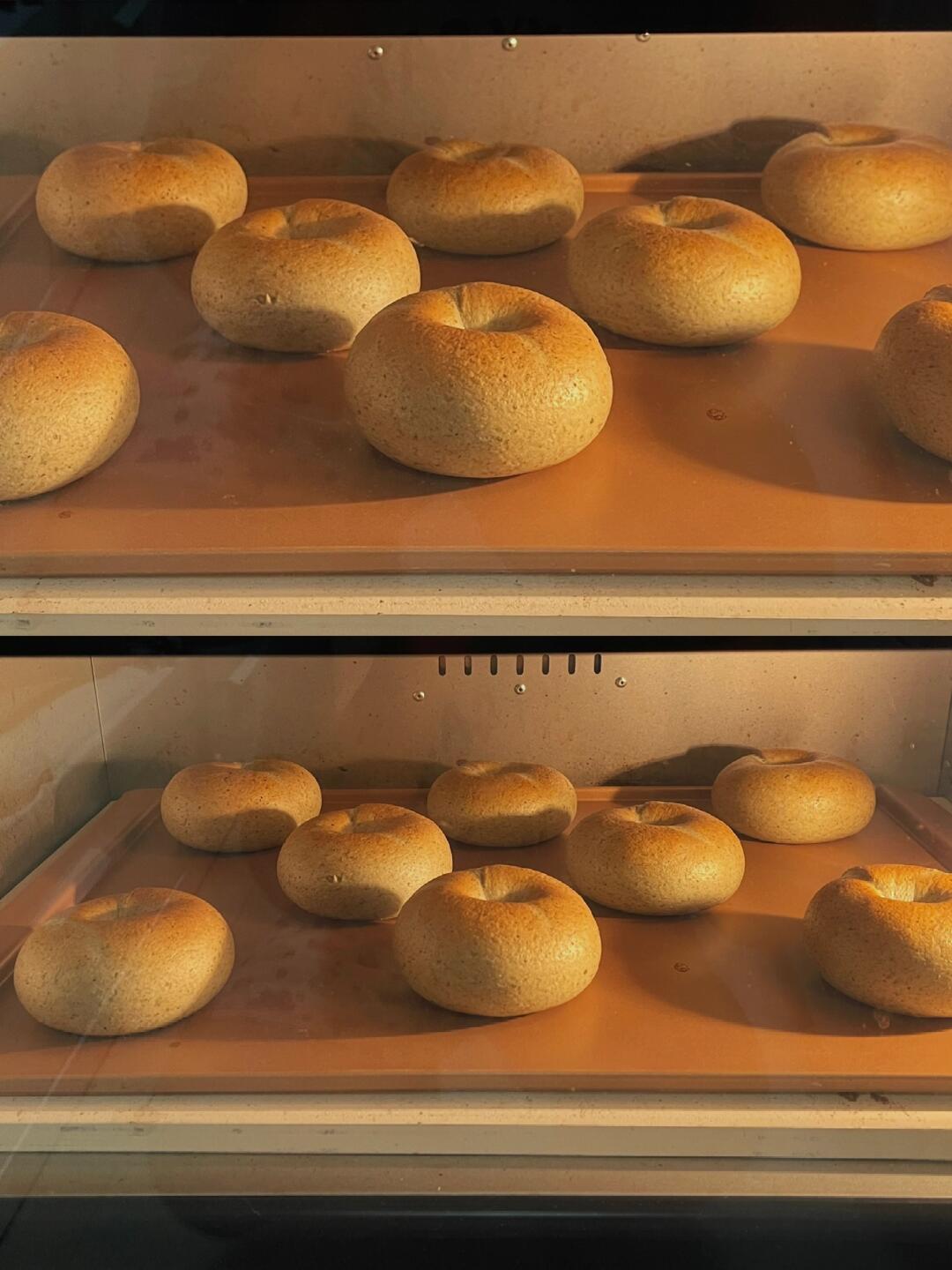 时间大概35-40分钟左右,观察贝果1.5-2倍大即可