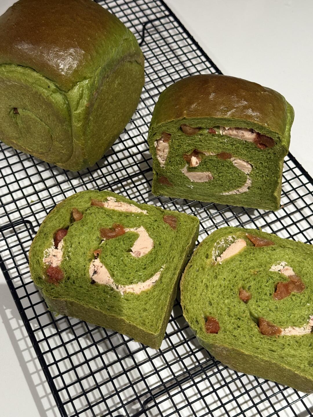 浓郁的日式抹茶草莓干玫瑰乳酪生吐司🍵🍓