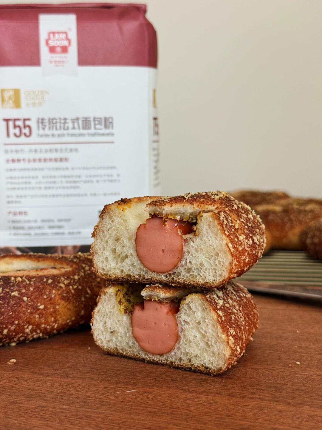 无糖油的法式芝士芥末籽肠仔包🌭外脆里韧
