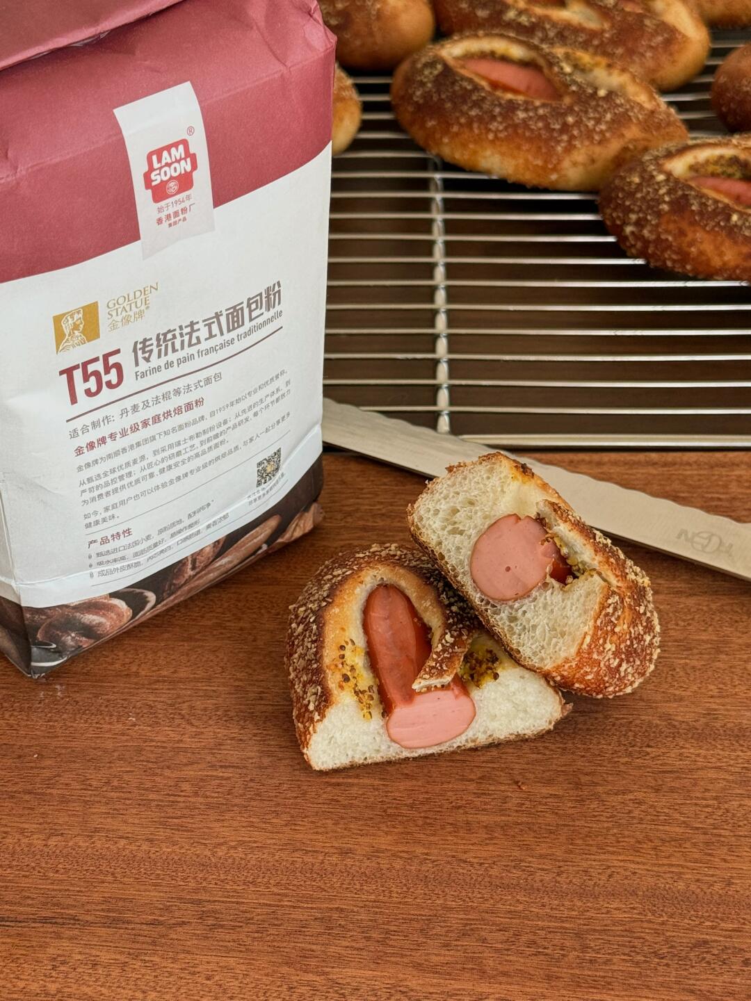 因为我用了金像T55法式面包粉来制作,这款面粉用的是