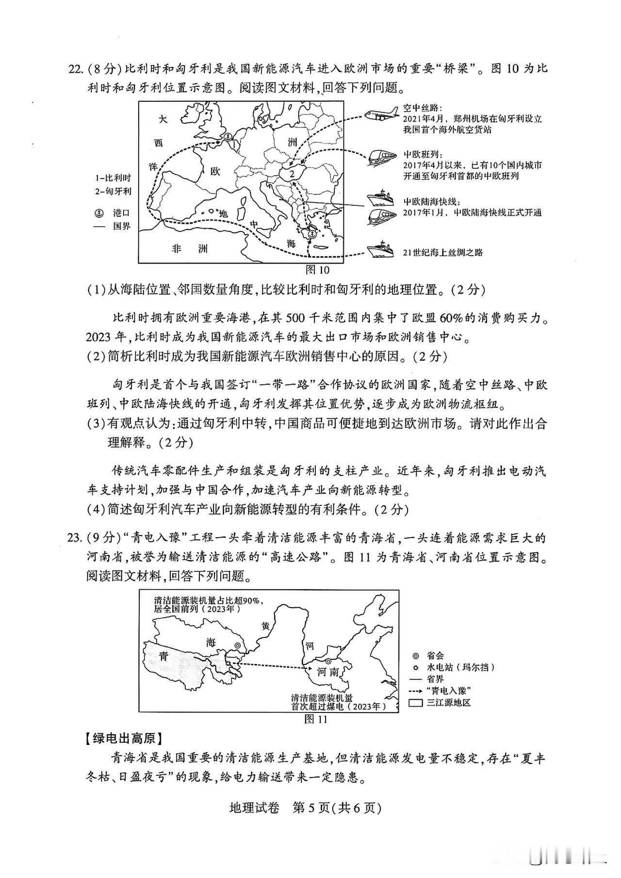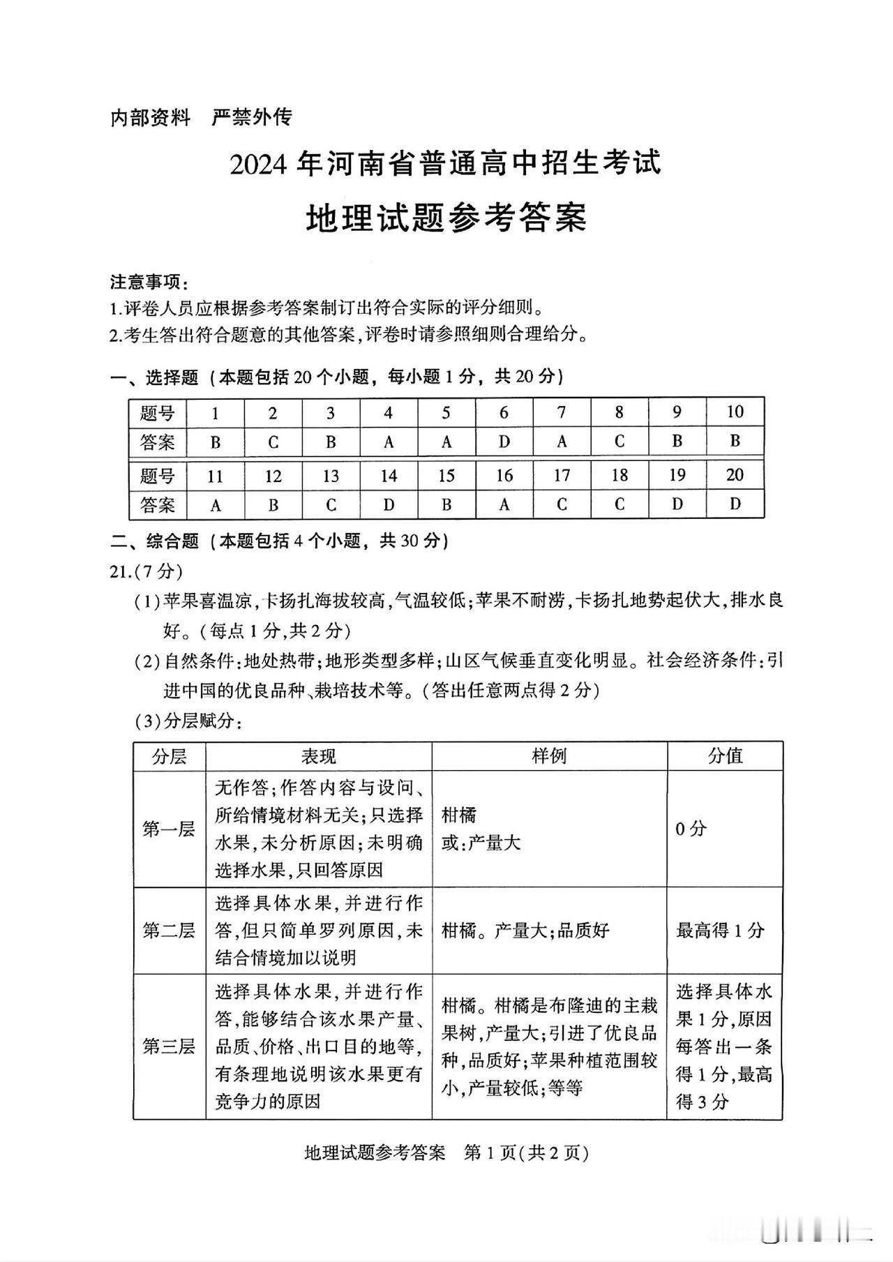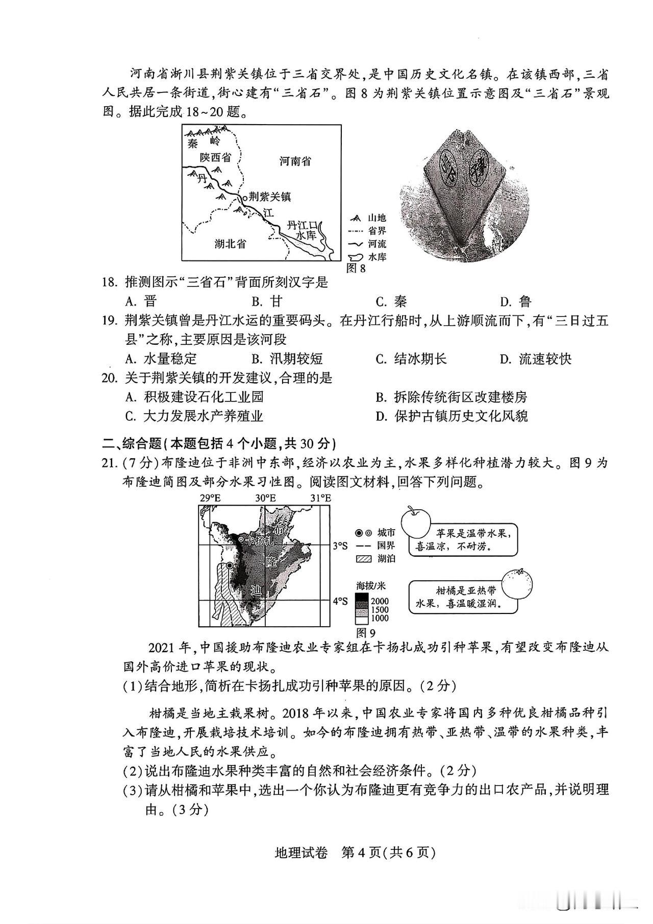 2024年河南中考地理试卷及参考答案