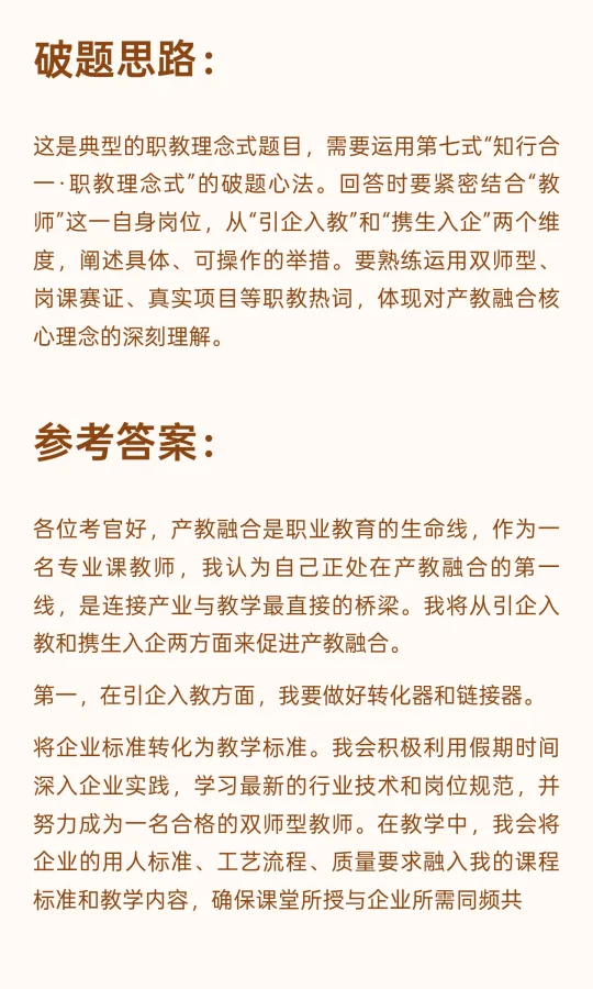 题目一:结合自身岗位谈谈如何促进产教融合?