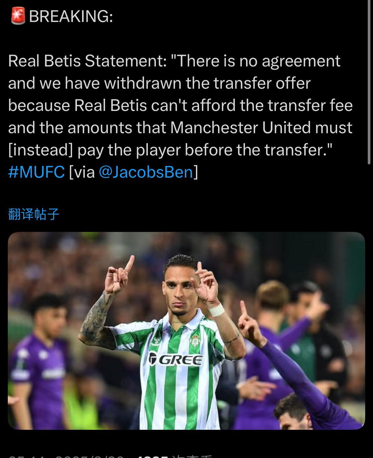 贝蒂斯蒙圈了,说好的安东尼要卖4000万呢?你曼联怎么就突然同意我们的2500万