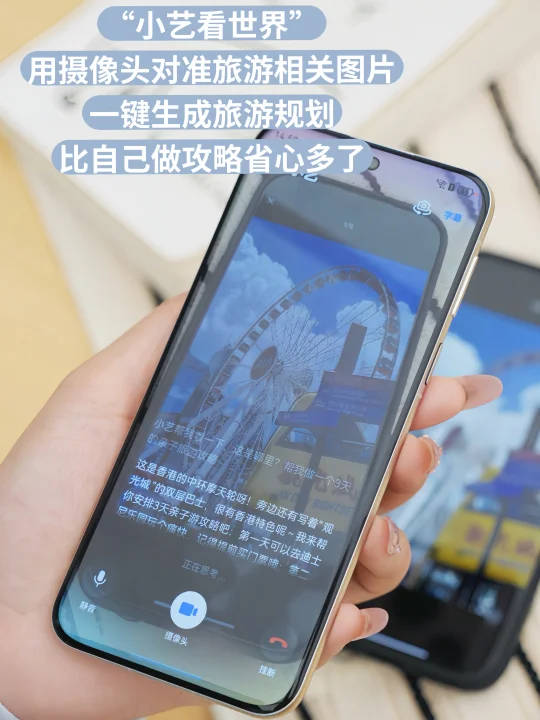 上手第一感觉就是丝滑!不管是桌面滑动,还是多应用切换,基本没有卡顿。像做旅游规划,对准旅游图,一键生成旅行路线。比如拍香港摩天轮,按要求秒出3天亲子游攻略,行程安排得明明白白,不用自己熬夜查攻略了。