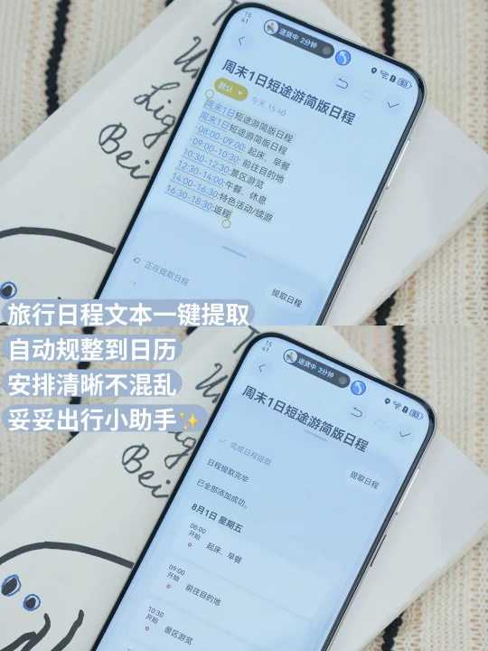 还有生成的旅行日程还能一键提取规整到日历,清晰又方便,出门省心好多🎒