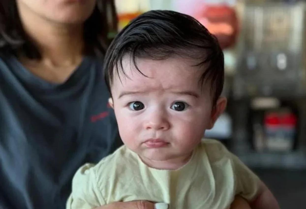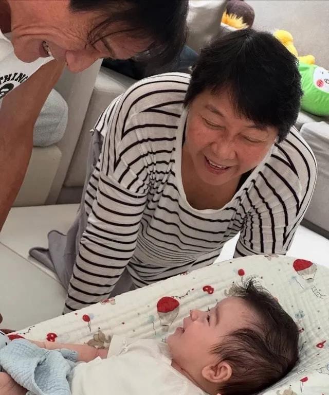 梁家辉的混血外孙太可爱了,祖孙对视充满温馨,梁家辉的女婿高大帅气,小外孙颜值在线