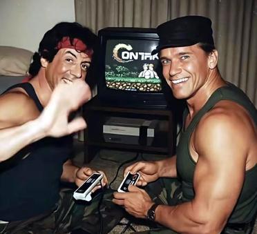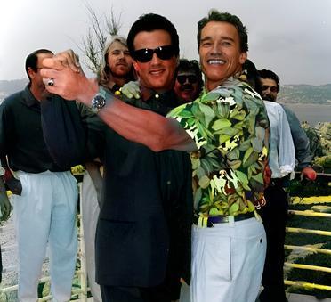 1990年,这两名美国动作巨星阿诺德·斯瓦辛格与史泰龙在法国戛纳电影节相聚。两名