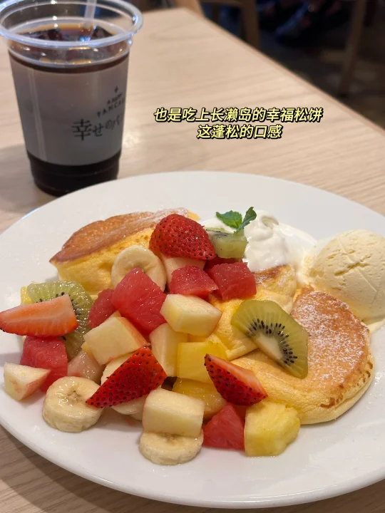 ✅13:30到濑长岛公交站 ,一百米走到幸福松饼店 ,立刻登记 ,等40min 吃上蓬松的水果松饼(如果你跟服务员说坐室外或者打包,几乎就不用怎么排队了。)